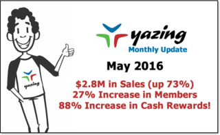 Yazing has been growing rapidly. We just posted a monthly update where we detail some of the specifics including over $5.5 million dollars in sales for our brands and nearly 100k in cash rewards for our members.
