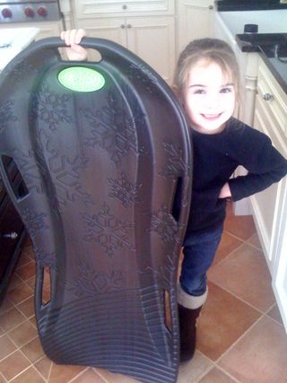 These hard plastic boogie boards are just what they need in this snow storm, and they will hold up for a long time. They are also big enough for double riders! The only complaint so far, is that walking back up the hill is a little difficult because they are a little more heavy than their old ones, but they also haven’t really built up a return track up the hill yet, so I think that will become easier.